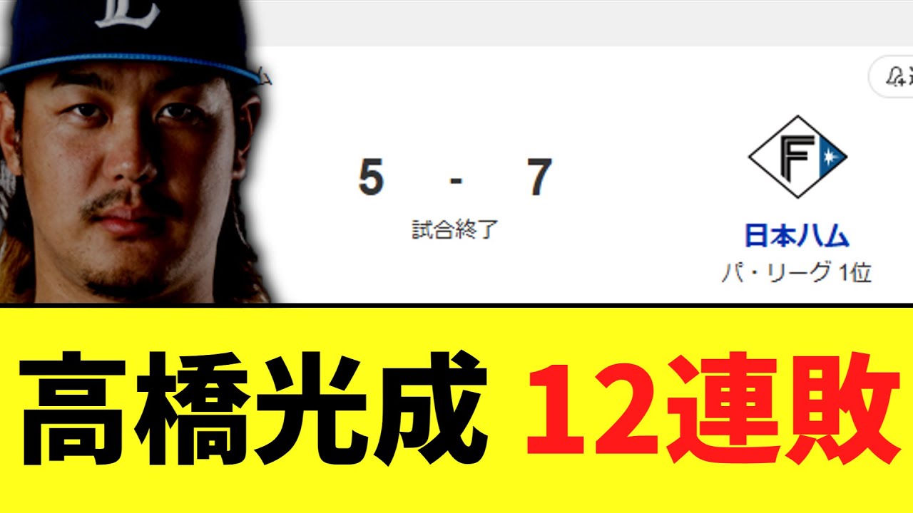 【悲報】高橋光成 12連敗 日ハムは開幕3連勝