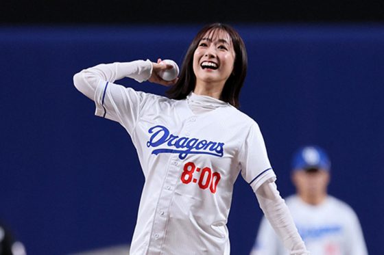 TBSアナウンサーの田村真子さんが2日、バンテリンドームで行われた中日-巨人戦の始球式に登場した。三重県松阪市出身の田村さんは、“2バウンド投球”で場内を盛り上げた。