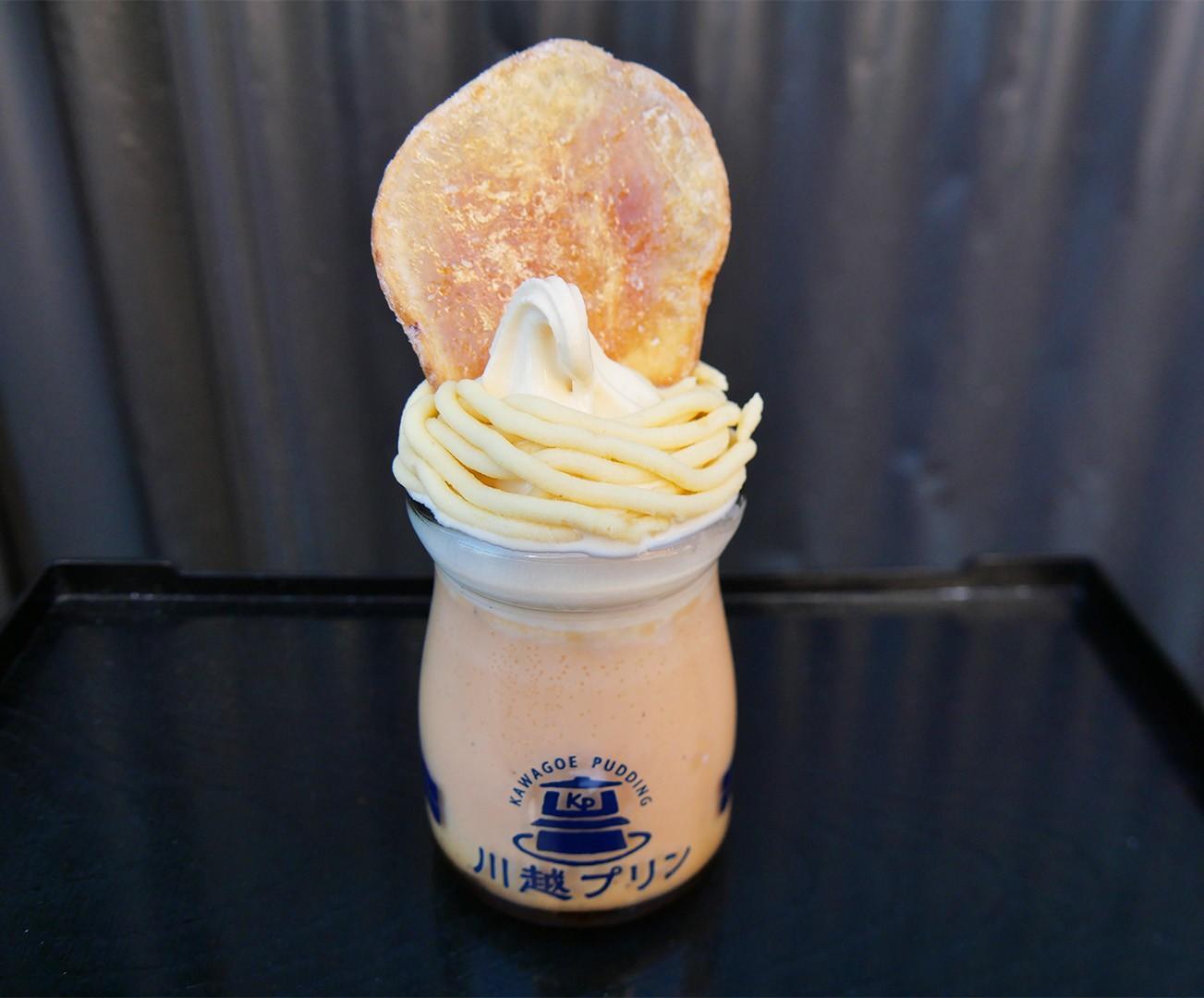 『川越いもプリン』に、『川越いものモンブランソフト』をトッピングしています。