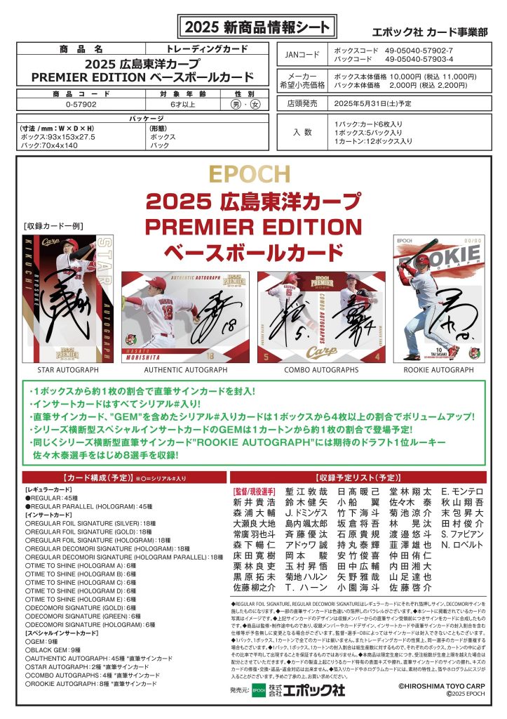 EPOCH 2025 広島東洋カープ PREMIER EDITION ベースボールカード