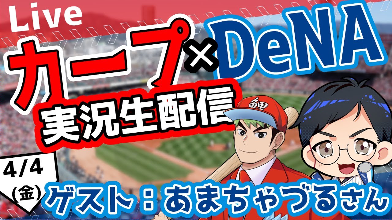 # カープ ライブ 4/4(金) 広島東洋カープ対横浜DeNAベイスターズを実況生配信でお送りします。得点シーンもアーカイブでハイライトをチャプターにします!