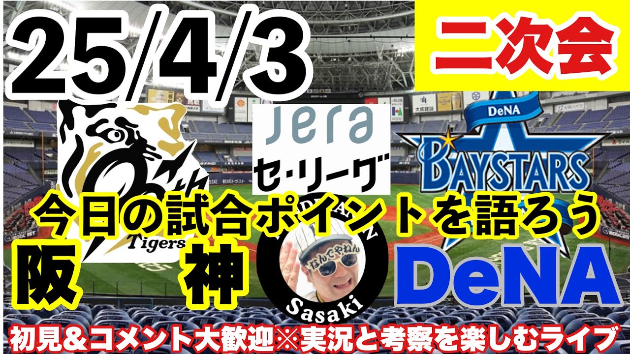 25/4/3 阪神vsDeNA 2次会【毎日プロ野球しゃべり場】今日の勝敗ポイントは!? 阪神&プロ野球を語るライブ #阪神タイガース #横浜denaベイスターズ #プロ野球