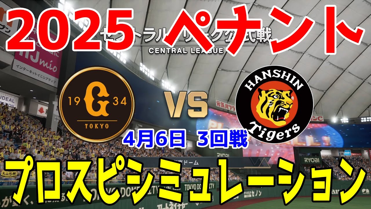 【2025年ペナント/プロスピ2024】読売ジャイアンツ 対 阪神タイガース プロスピシミュレーション 2025年4月6日 3回戦【プロ野球スピリッツ2024-2025】