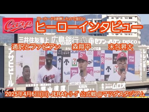 20250406【現地】ほっこり爆笑ヒーローインタビュー【フアン・フェリシアーノ通訳とファビアン森末包】広島東洋カープ@MAZDA Zoom-Zoom スタジアム広島・ビジターパフォーマンス