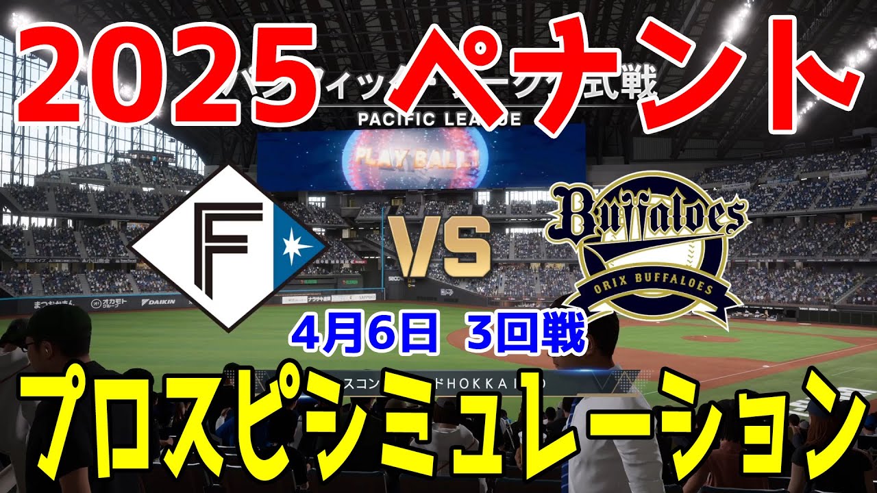 【2025年ペナント/プロスピ2024】北海道日本ハムファイターズ 対 オリックスバファローズ プロスピシミュレーション 2025年4月6日 3回戦【プロ野球スピリッツ2024-2025】