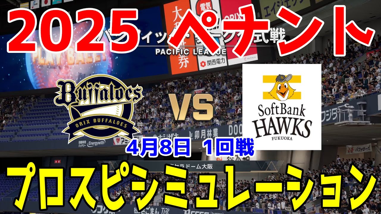 【2025年ペナント/プロスピ2024】オリックスバファローズ 対 福岡ソフトバンクホークス プロスピシミュレーション 2025年4月8日 1回戦【プロ野球スピリッツ2024-2025】