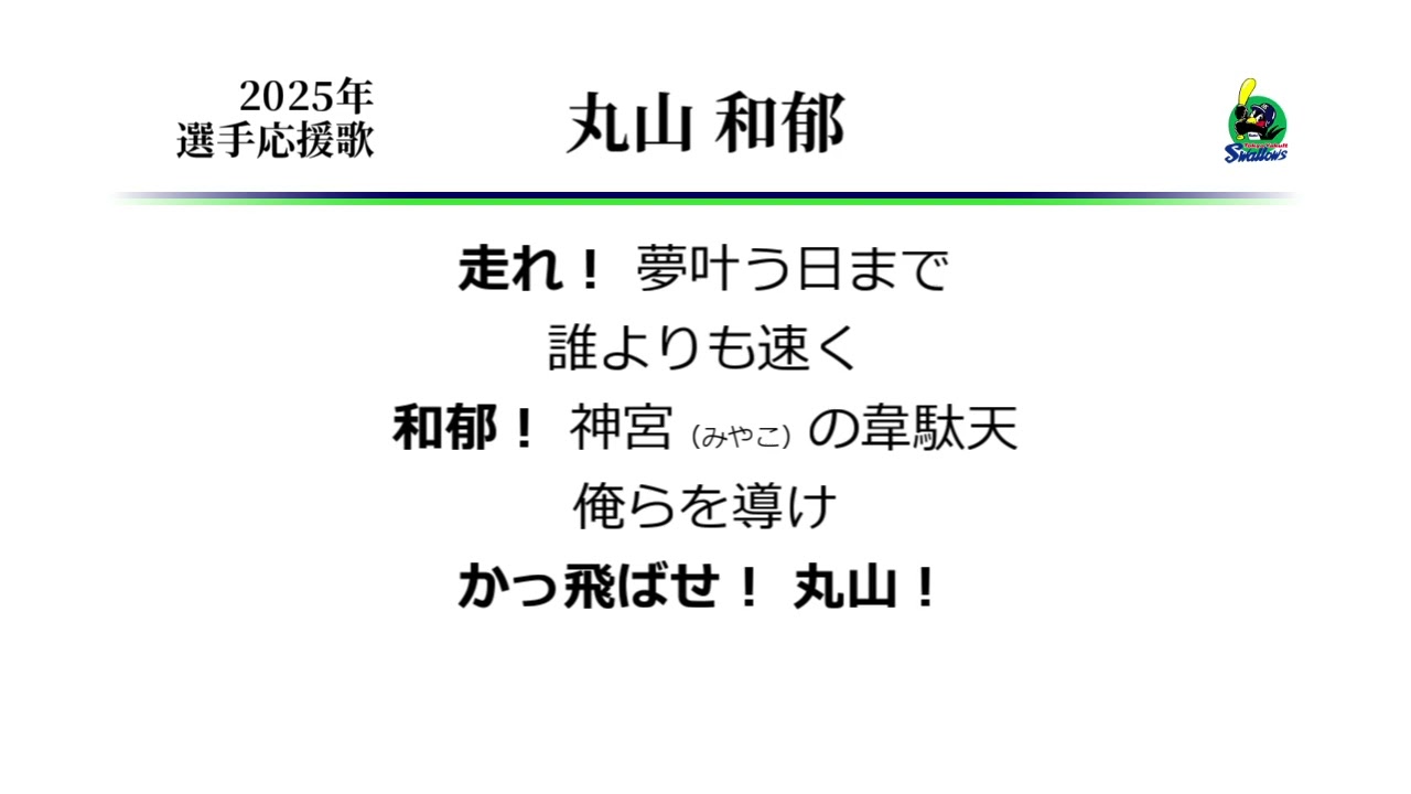東京ヤクルトスワローズ 丸山和郁 応援歌 [MIDI] ヤクルト丸山和郁選手の応援歌。弁護士の丸山和也とは別人です。 曲の雰囲気も絶妙な切なさがあっていいですよね。 Kazuya Maruyama (Baseball Player)Tokyo Yakult SwallowsTokyo Yakult Swallows (Baseball Team)なんぶふじ丸山和郁応援歌東京ヤクルトスワローズ NPBHUB.COM | The Fanbase of Nippon Baseball & Nippon Professional Baseball