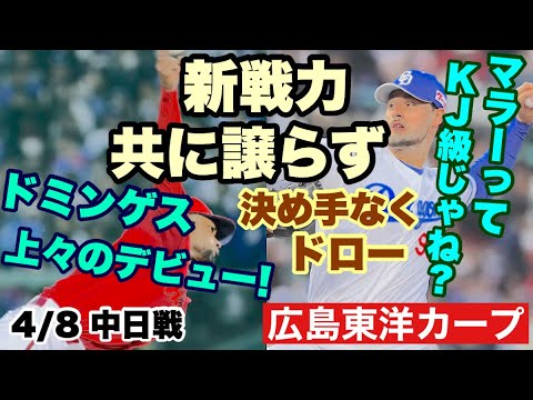 【広島東洋カープ】4/8 中日戦 新外国人投手同士の投げ合いは、決着つかずのドロー! お互い決め手に欠く攻撃でした 【ジョハン・ドミンゲス】【岡本駿】【小園海斗】【栗林良吏】【新井貴浩】【カープ】