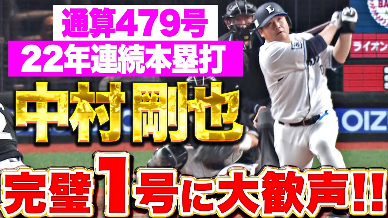9回、埼玉西武・中村剛也が代打で登場。真ん中付近に入った甘い球を見逃さず、レフトスタンドへの豪快ホームラン!! 通算479号、そして生え抜き初の22年連続本塁打を達成する一発に、スタンドが沸いた!!