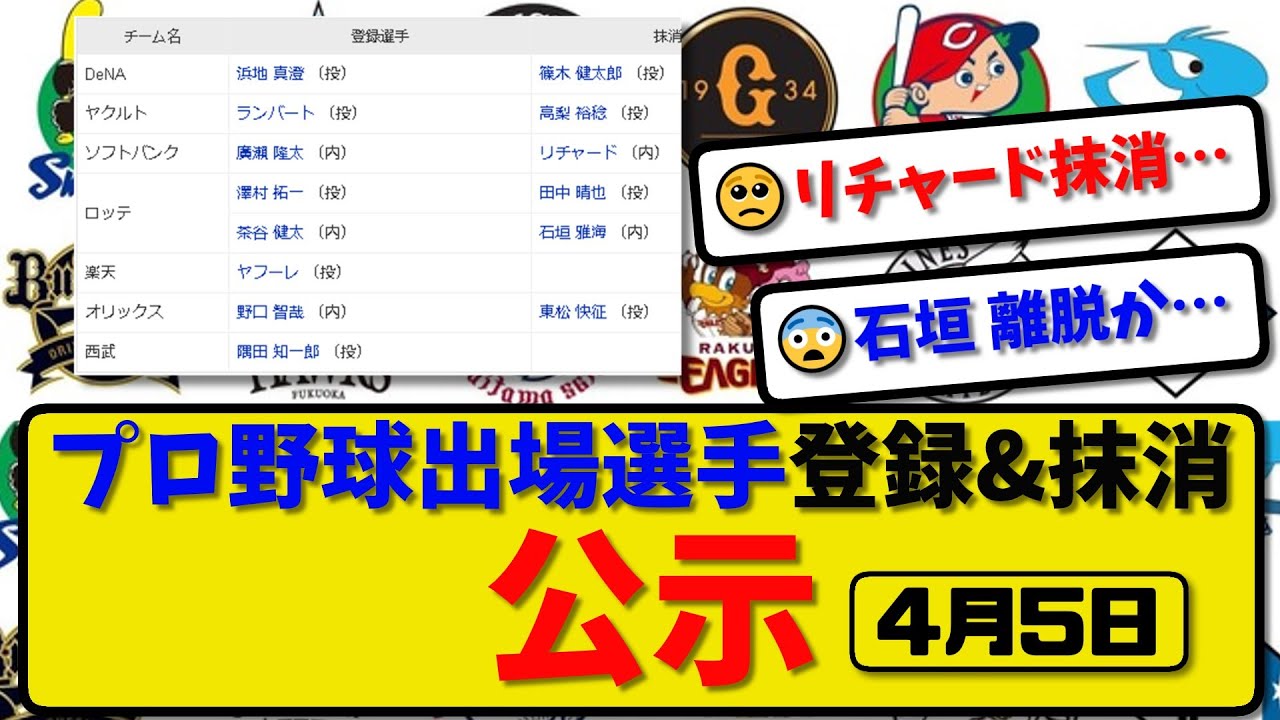 【公示】プロ野球 出場選手登録&抹消 公示4月5日発表|篠木&リチャード&石垣&東松ら抹消|浜地&廣瀬&澤村&茶谷&野口ら登録【最新・まとめ・反応集・なんJ・2ch】 #阪神タイガース #広島カープ #横浜DeNAベイスターズ #読売ジャイアンツ #ヤクルトスワローズ #中日ドラゴンズ #日本ハムファイターズ #福岡ソフトバンクホークス #東北楽天ゴールデンイーグルス #オリックスバファローズ #千葉ロッテマリーンズ #西武ライオンズ #プロ野球 #反応集 #なんJ #5ch #2ch Hanshin Tigers浜地真澄阪神タイガース NPBHUB.COM | The Fanbase of Nippon Baseball & Nippon Professional Baseball