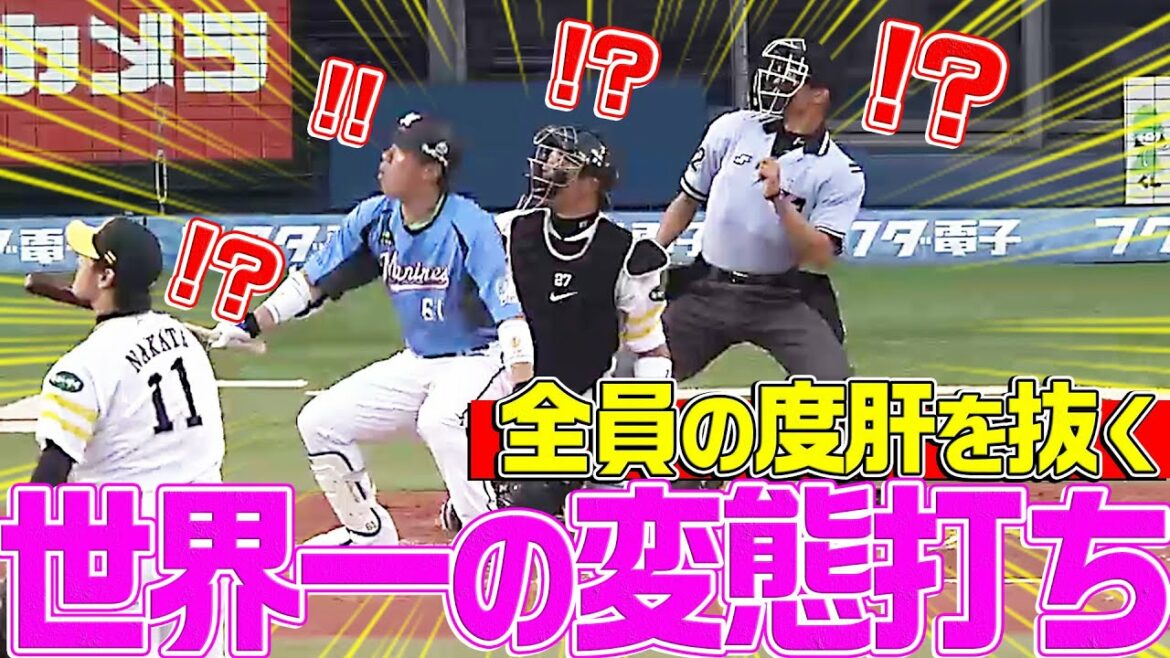 【パ・リーグ名場面プレイバック】千葉ロッテ・角中勝也が膝元付近で曲がる投球をバットに当ててカットする変態打ち。超ド級、世界一のバットコントロールで、登場人物全員を驚かせた。