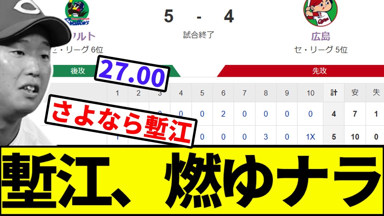 【塹江ハーン!!】塹江、サヨナラ…【なんJ反応】【なんG反応】【プロ野球反応集】【2chスレ】【5chスレ】【カープ】【丸山】【巨人】【中日】【ベイスターズ】【阪神】【セリーグ】【ヤクルト】