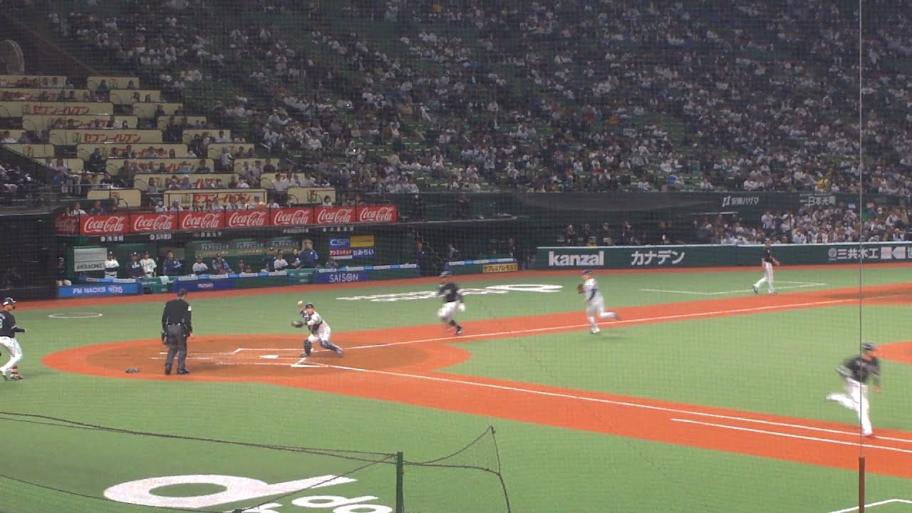 6回表ノーアウト満塁で、藤岡裕大のゴロをセカンド山野辺翔がキャッチ後、キャッチャー古賀悠斗にバックホームして423のホームゲッツー。