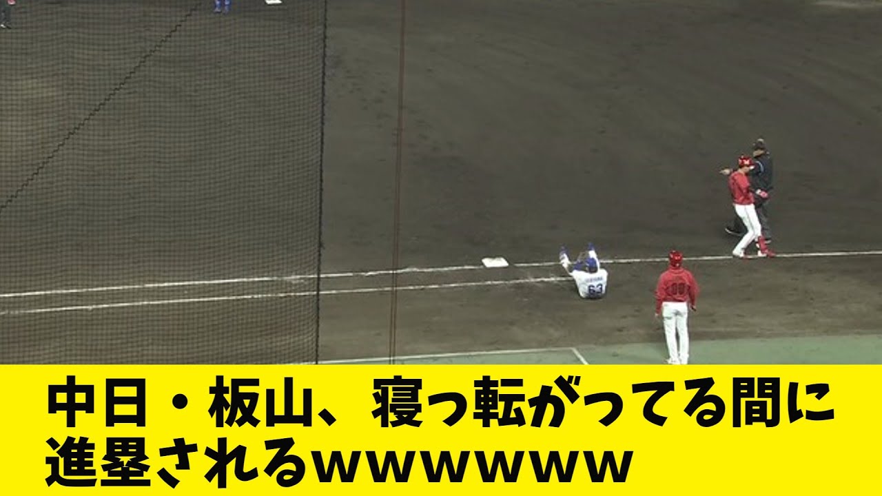 中日・板山さん、寝っ転がってる間に進塁されてしまう