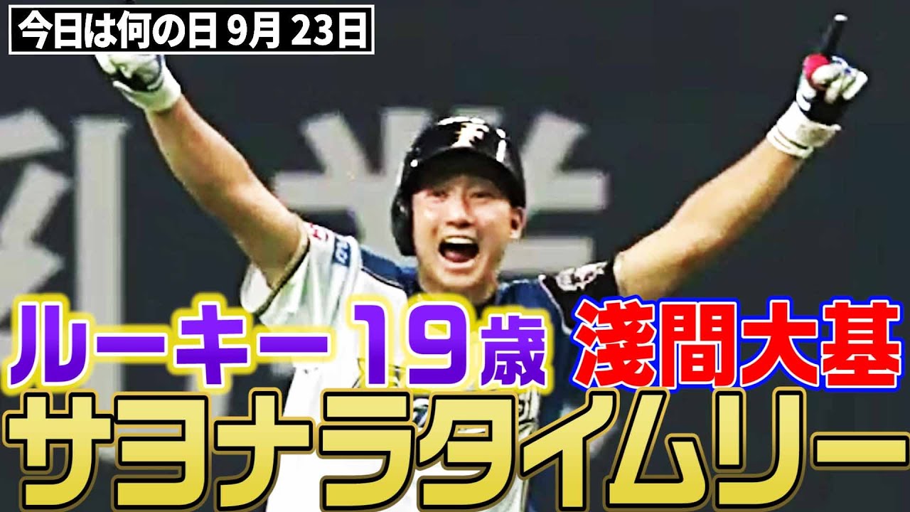 【数年前の今日はどんな出来事があったかを振り返る特別企画】2015年9月23日 北海道日本ハムファイターズ対福岡ソフトバンクホークスの一戦。延長11回裏、北海道日本ハムは1死1,2塁のチャンスで打席には19歳のルーキー・淺間大基。3ボール1ストライクから福岡ソフトバンク・柳瀬明宏の高めのボールを振り抜くと、打球は右中間を破るサヨナラタイムリー。殊勲の一打を称える先輩たちの手痛い祝福を受け喜びを噛み締めた。
