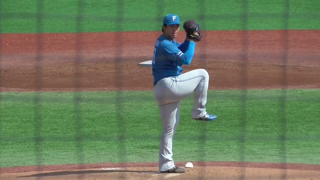 2025年4月9日 イースタンリーグ 北海道日本ハム・北浦 竜次 投手の準備投球(ボールデッド中)
