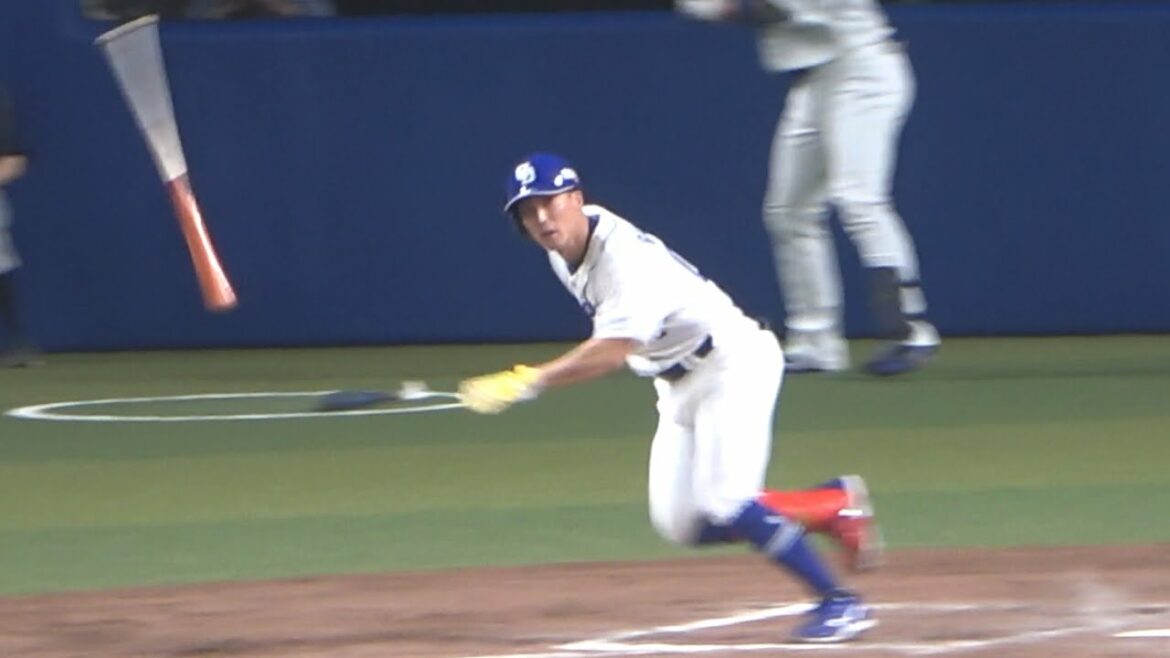 後藤駿太、貴重な追加点となる2点タイムリースリーベース!美しいバット投げ! (2022/08/21)