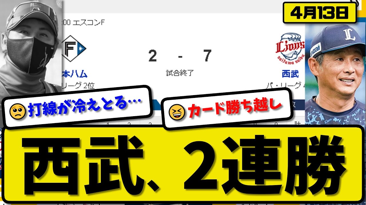 【2位vs5位】西武ライオンズが日本ハムファイターズに7-2で勝利…4月13日快勝で2連勝…先発渡邉5回1失点…セデーニョ&ネビン&古賀&西川が活躍【最新・反応集・なんJ・2ch】プロ野球