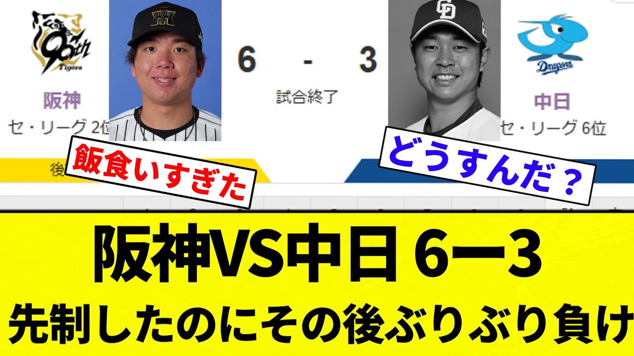 【もうぶりぶりや】阪神VS中日 6ー3 先制したのにその後ぶりぶり負け【プロ野球反応集】【2chスレ】【なんG】