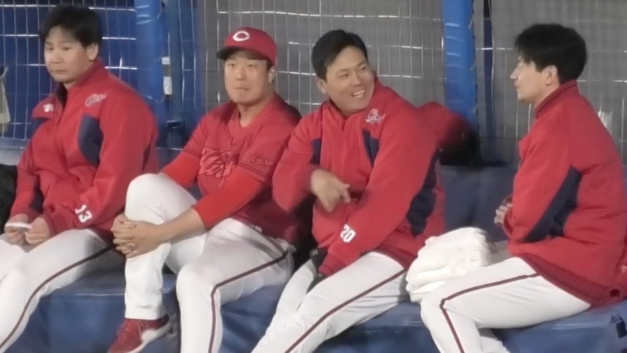ニコニコご機嫌な栗林良吏とカープブルペン投手陣!広島東洋カープvs東京ヤクルトスワローズ 2025年4月3日
