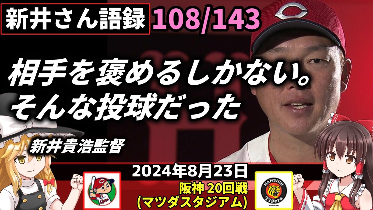 「相手を褒めるしかない。そんな投球だった」【新井監督語録:2024年8月23日】玉村 根負け 6回3失点 3戦連続の完投ならず。打線が不発 1点止まり また高橋に苦杯。小園 通算500安打。