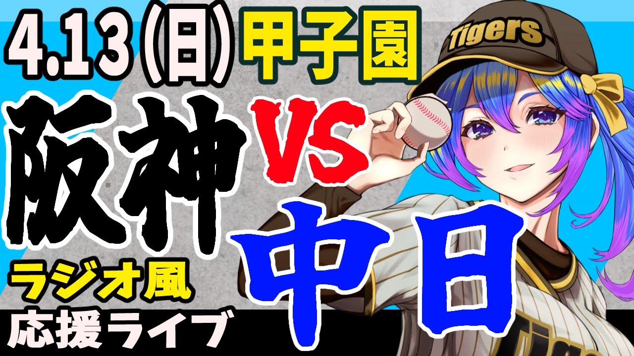 【阪神応援実況】4/13(日)阪神タイガースVS中日ドラゴンズのプロ野球同時視聴ライブ!阪神ファン、中日ファン歓迎!!!【プロ野球速報/プロ野球ライブ/女性Vtuber】