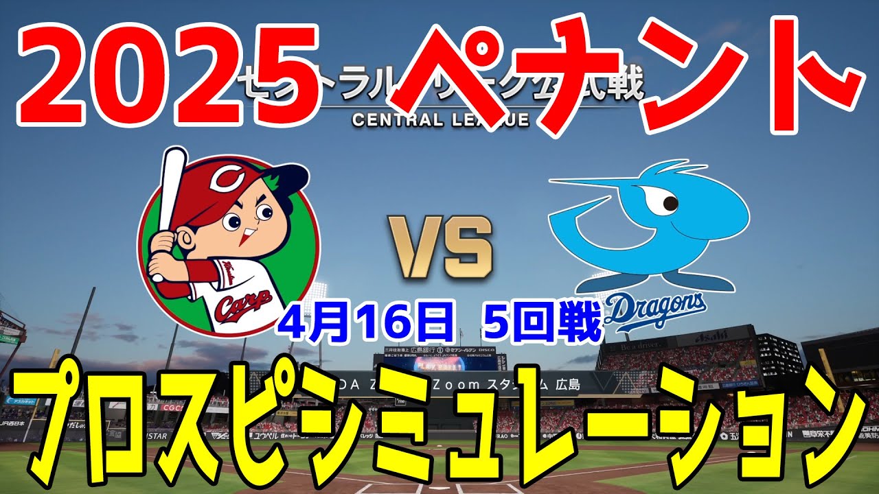 【2025年ペナント/プロスピ2024】広島東洋カープ 対 中日ドラゴンズ プロスピシミュレーション 2025年4月16日 5回戦【プロ野球スピリッツ2024-2025】