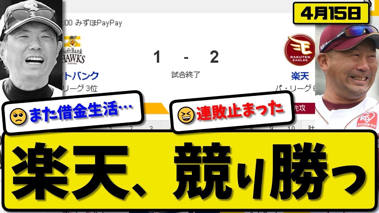 【3位vs6位】楽天イーグルスがソフトバンクホークスに2-1で勝利…4月15日競り勝つ…先発藤井6.1回1失点…浅村が全打点の活躍【最新・反応集・なんJ・2ch】プロ野球 #東北楽天ゴールデンイーグルス #福岡ソフトバンクホークス #プロ野球 #反応集 Tohoku Rakuten Golden Eagles東北楽天ゴールデンイーグルス NPBHUB.COM | The Fanbase of Nippon Baseball & Nippon Professional Baseball