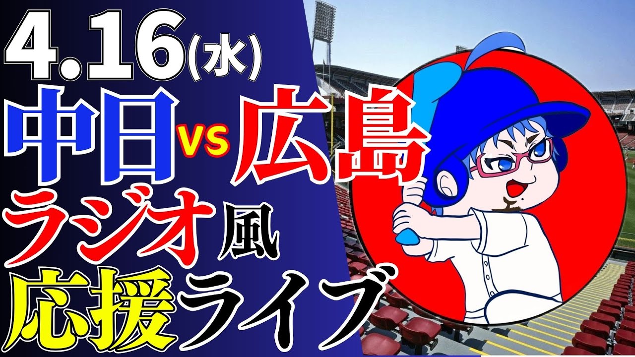 【連敗は阻止せよ!】4/16(水)広島東洋カープ対中日ドラゴンズのプロ野球観戦ライブ