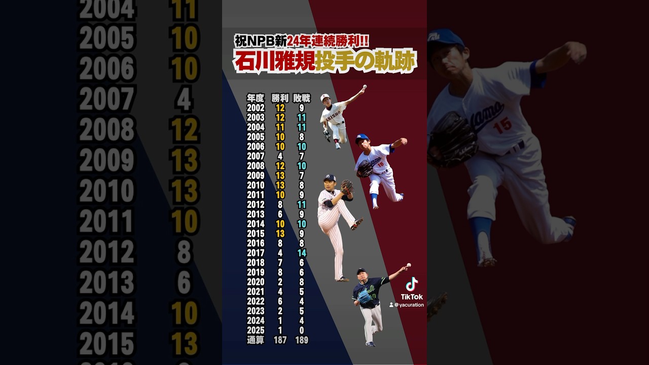 24年連続勝利🏅石川雅規投手の軌跡 #プロ野球 #石川雅規 #東京ヤクルトスワローズ #つば九郎 Tokyo Yakult Swallows東京ヤクルトスワローズ石川雅規 NPBHUB.COM | The Fanbase of Nippon Baseball & Nippon Professional Baseball