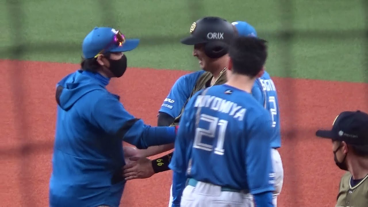 ここで日本ハム監督のBIG BOSS(新庄剛志)監督が一塁ベース付近にいた杉本裕太郎選手の元まで歩み寄り、直接謝罪。これには杉本選手も笑顔を見せ、場の雰囲気が収まりました。