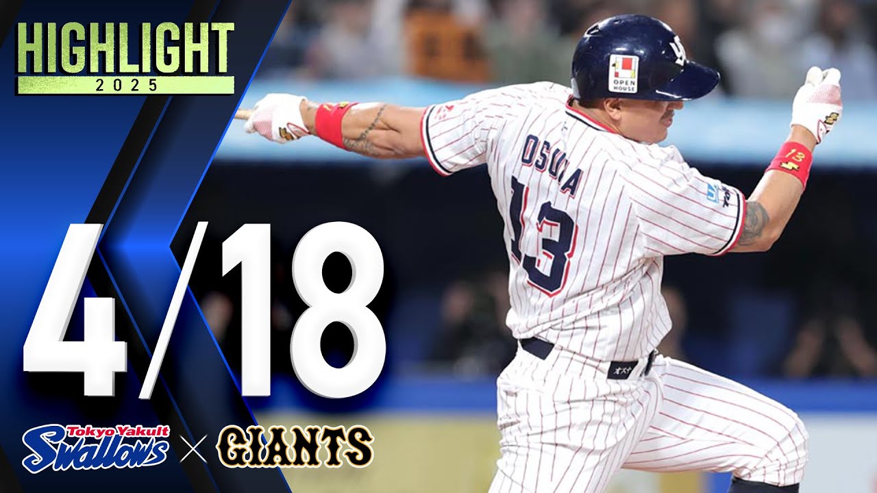 【スワローズ活躍シーン】オスナ選手、2打点の活躍! 4月18日 東京ヤクルトスワローズvs読売ジャイアンツ(神宮球場)