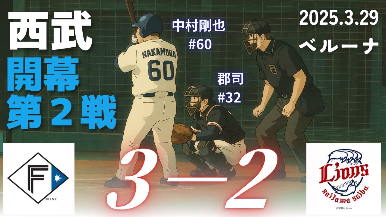 プロ野球 2025 パ・リーグ開幕戦 2025.3.29 。ベルーナドームでの北海道日本ハムファイターズ 対 埼玉西武ライオンズの一戦を振り返り解説します。先発は渡邊勇太朗。リリーフは、甲斐野、平良海馬、ウィンゲンター。