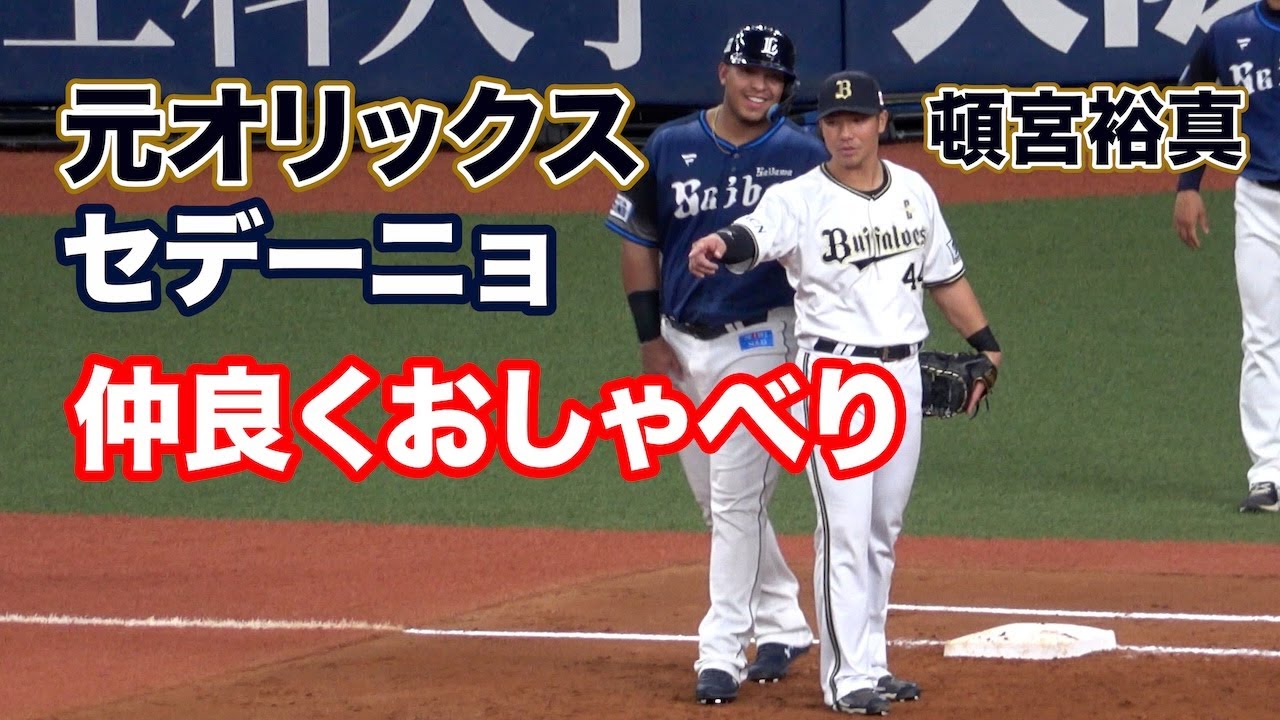 元チームメイトのセデーニョと仲良く会話する頓宮裕真 2025年4月15日 オリックスvs西武 京セラドーム #頓宮裕真 #セデーニョ #オリックスバファローズ ORIX Buffaloesオリックス・バファローズ NPBHUB.COM | The Fanbase of Nippon Baseball & Nippon Professional Baseball