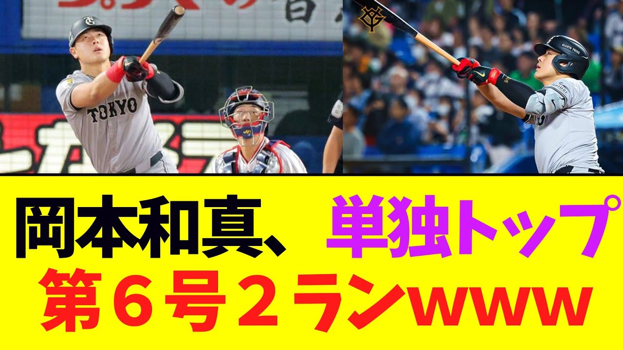 巨人・岡本和真、リーグ単独トップとなる第6号2ランホームランwwwww