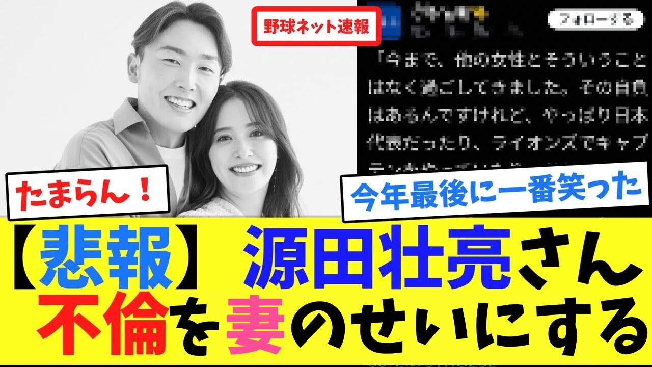 【悲報】源田壮亮さん、不倫した理由告白【ネット反応集】 このチャンネルではプロ野球界で起こった出来事に対するネット上での反応をまとめています。 当チャンネルと共にプロ野球を楽しんでいただけたら嬉しいです。 まとめてほしい出来事のリクエストやご感想はコメント欄へどうぞ! ※元々DeNA専門チャンネルとしていましたが幅広く取り扱っていくため一度過去の動画は非公開にいたしました。 #源田不倫 #源田告白 #源田自負 #源田不倫 #プロ野球 #なんj反応 #2ch #5ch #プロ野球Saitama Seibu LionsなんJ野球埼玉西武ライオンズ山川穂高岡本和真源田不倫源田壮亮源田自負衛藤美彩週刊文春 NPBHUB.COM | The Fanbase of Nippon Baseball & Nippon Professional Baseball