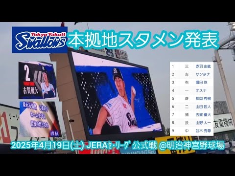 20250419【東京ヤクルトスワローズ】本拠地スタメン発表 & 応援歌!胸熱なマスオ増田珠3番!捕手は古賀優大 先発投手は8番で投打に輝く山野太一@神宮球場・レフト外野 明治神宮野球場 #スタメン発表 #スタメン #スターティングメンバー #スターティングラインナップ #startinglineup #プロ野球 #赤羽由紘 #増田珠 #古賀優大 #山野太一 #並木秀尊 Tokyo Yakult Swallows古賀優大東京ヤクルトスワローズ NPBHUB.COM | The Fanbase of Nippon Baseball & Nippon Professional Baseball