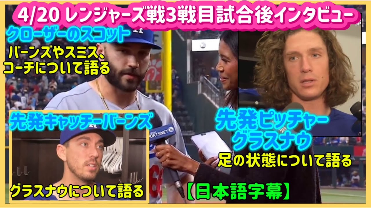 【日本語字幕】ドジャース勝利後インタビュー‼️レンジャーズ戦4/20 タナー、バーンズ、グラスナウ#大谷翔平現地映像 #大谷翔平速報#ohtanishohei