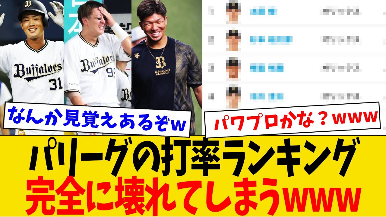 【衝撃】パリーグの打率ランキング、オリックスが完全に壊してしまうwww #野球 #プロ野球 #オリックスバファローズ #太田椋 #杉本裕太郎 #頓宮裕真 #中川圭太 中川 #西川龍馬 ご視聴いただきありがとうございます。 パリーグの打率ランキングについて首位を独走するオリックスの選手が1位から5位までを独占する異常事態になっていることに対するプロ野球ファンの反応集になります。 よろしければチャンネル登録・高評価よろしくお願いします! ORIX Buffaloesオリックス・バファローズ杉本裕太郎 NPBHUB.COM | The Fanbase of Nippon Baseball & Nippon Professional Baseball