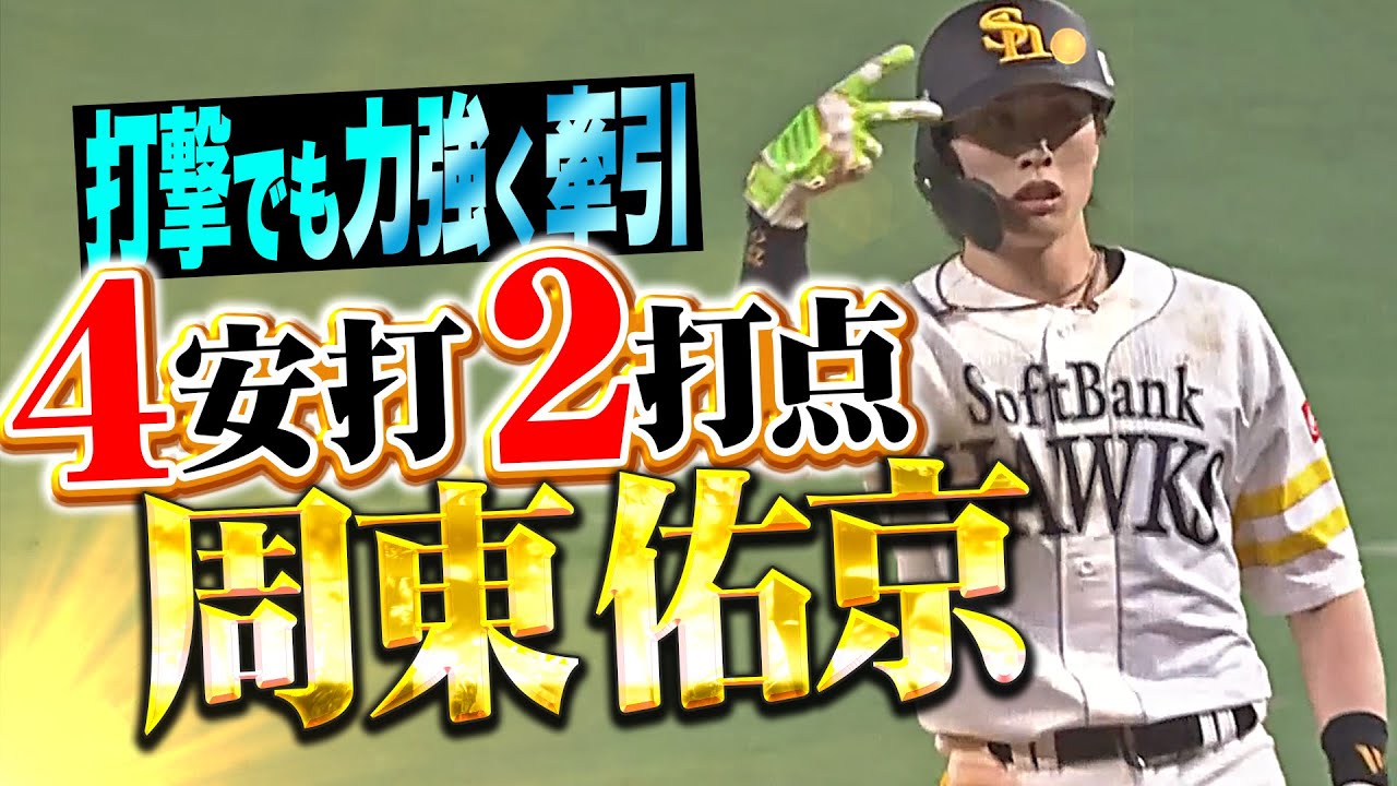 22日のオリックス戦、延長12回引き分けとなった試合で福岡ソフトバンクの1番・周東佑京がタイムリー含む4安打2打点の活躍!走塁と守備ではもちろん、そして打撃でも欠かせぬ存在に…チームを力強く牽引する打撃をまとめてお届け。