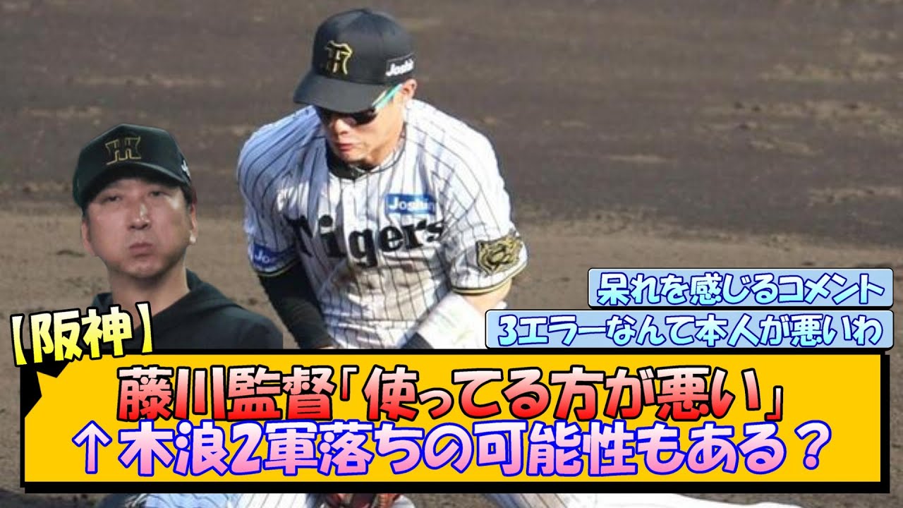 【阪神】藤川監督「使ってる方が悪い」←木浪2軍落ちの可能性もある?