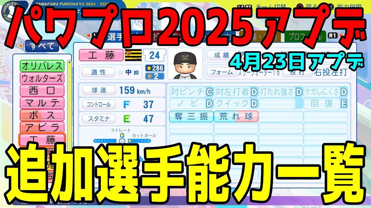 【パワプロ2025】追加選手能力一覧【2025年4月23日アップデート】【パワフルプロ野球2024-2025】アプデ