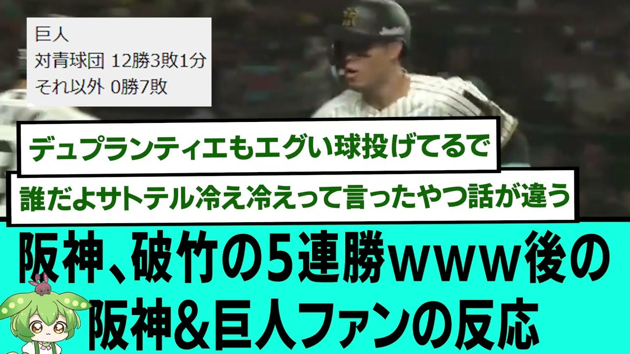 阪神、破竹の5連勝www後の阪神&巨人ファンの反応【プロ野球/阪神タイガース/なんJ2ch5chスレまとめ/セリーグ/近本光司/大山悠輔/中野拓夢/村上頌樹/2025年4月25日】
