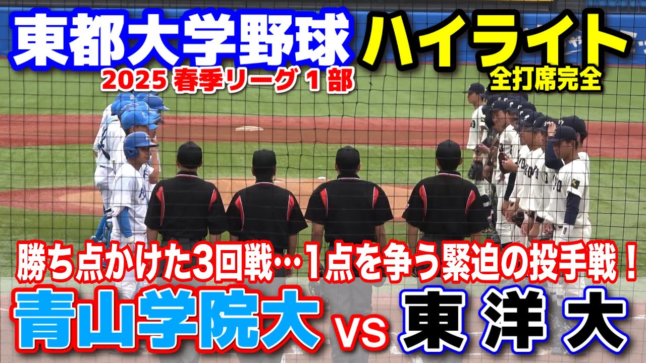 青山学院大学 vs 東洋大学 勝ち点をかけた3回戦…1点を争う緊迫の投手戦! 【東都大学野球 春季リーグ1部 3回戦 全打席完全ハイライト】 2025.4.25 明治神宮球場