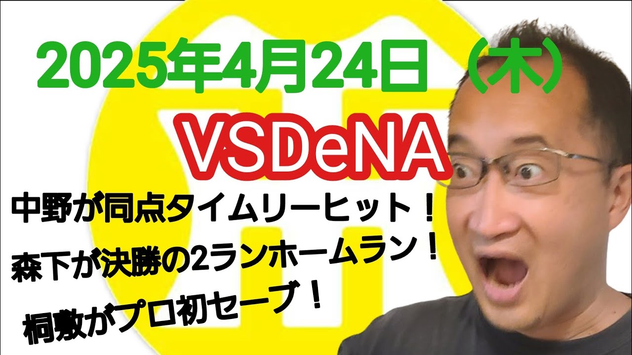 【阪神タイガースについて語る動画】2025年4月24日(木) ● DeNA 2 × 4 阪神 ○ 中野が同点タイムリーヒット! 森下が決勝の2ランホームラン! 桐敷がプロ初セーブ!