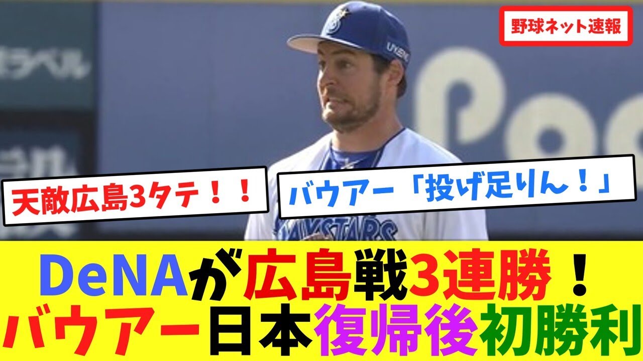 DeNAが広島戦3連勝!バウアー日本復帰後初勝利【ネット反応集】