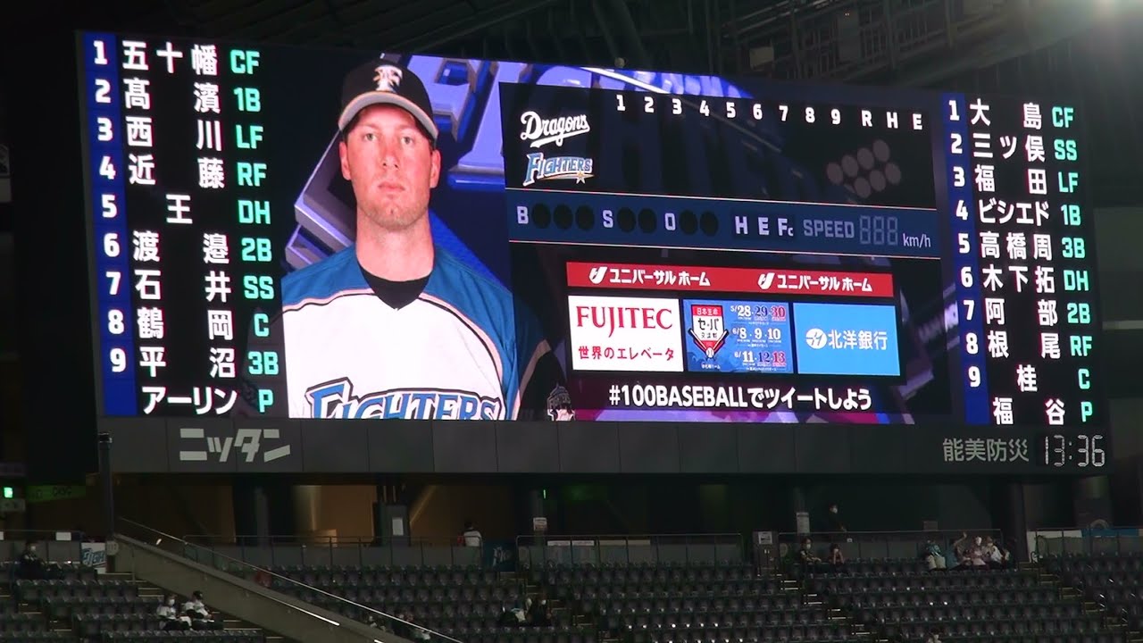 2021年5月30日、札幌ドームでの北海道日本ハムファイターズvs中日ドラゴンズ 第3回戦にて、ファイターズのスタメン発表シーンです