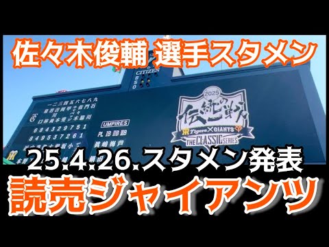 【#佐々木俊輔 選手 スタメン】#読売ジャイアンツ ✨#スタメン発表 ⚾️先発 #石川達也 投手 25.4.26. 🆚 #阪神 #ビジター #阪神甲子園球場 #東京読売ジャイアンツ #読売巨人軍 #巨人スタメン #ジャイアンツYOKOHAMA DeNA BAYSTARS横浜DeNAベイスターズ甲子園石川達也阪神巨人 NPBHUB.COM | The Fanbase of Nippon Baseball & Nippon Professional Baseball
