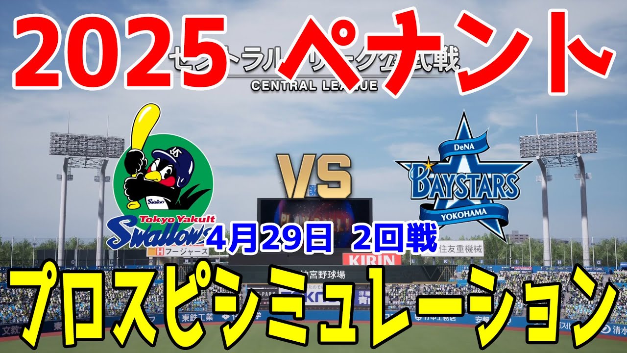 【2025年ペナント/プロスピ2025】東京ヤクルトスワローズ 対 横浜DeNAベイスターズ プロスピシミュレーション 2025年4月29日 2回戦【プロ野球スピリッツ2024-2025】