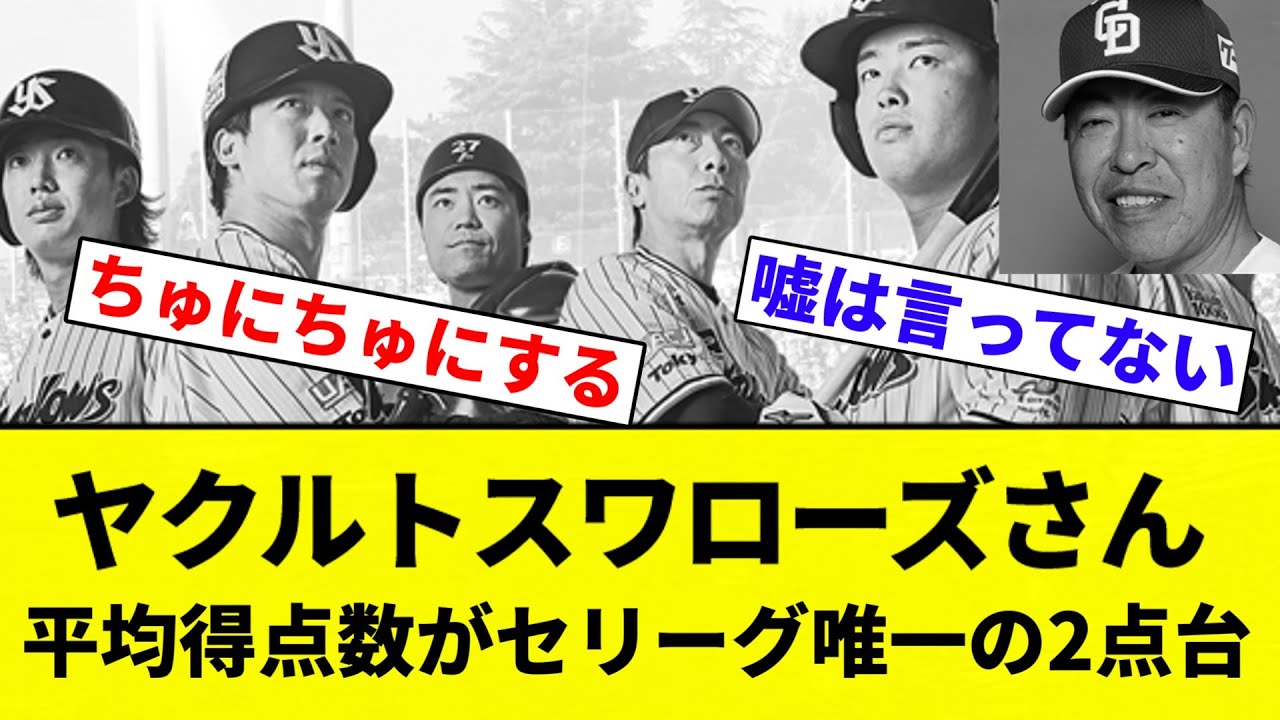 【よーやってない】ヤクルトスワローズさん、1試合平均得点数がセリーグ唯一の2点台【プロ野球反応集】【2chスレ】【なんG】
